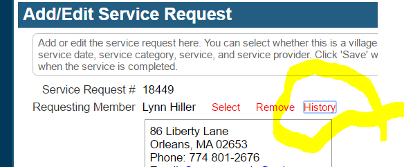 It is best to check the member's history while they are on the phone. You can use this to review future service requests with them and let them know of the status of those requests. Often volunteers sign up for multiple services for a member and you can give the member all the information with a single call.